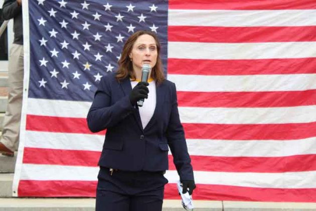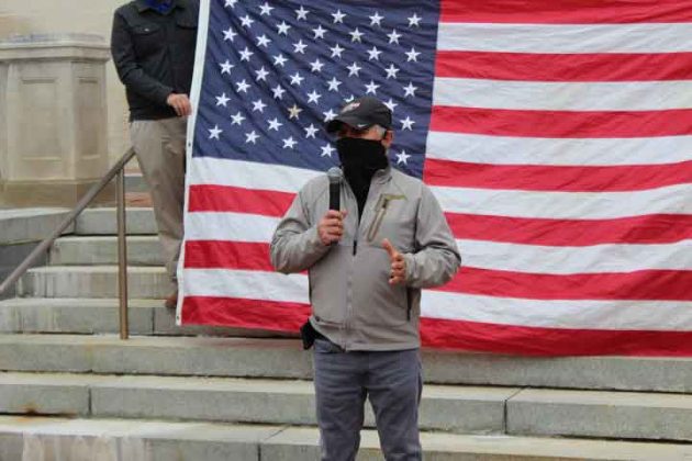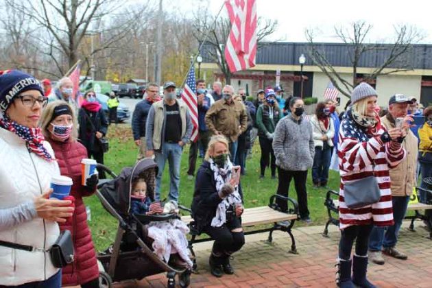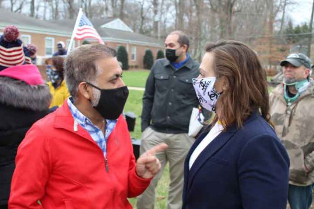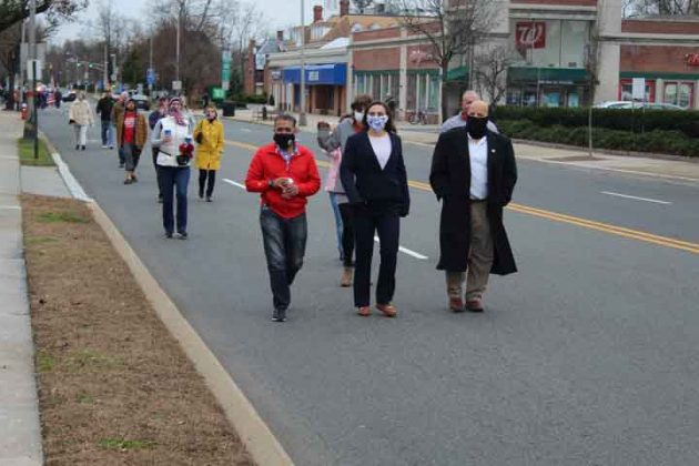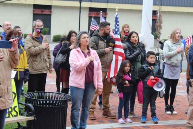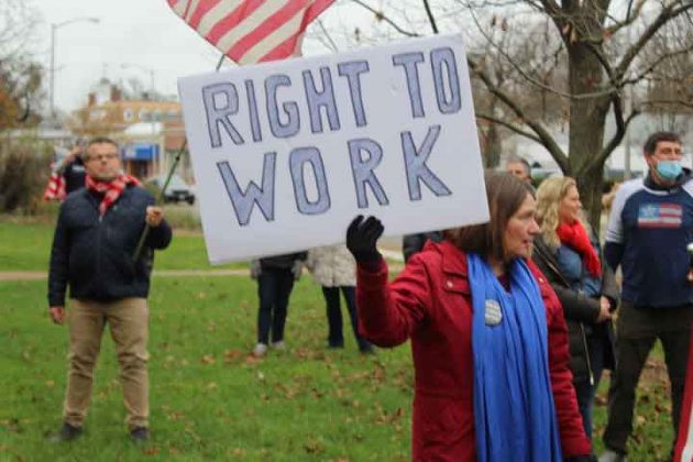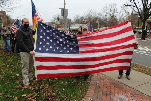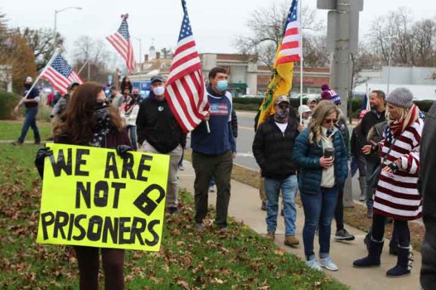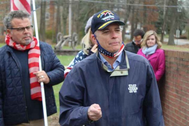 The group gathered at Morris Township Municipal Complex at 10:00 a.m. and marched west on Route 124 escorted by police for a rally at Morristown Town Hall. A series of speakers blasted measures imposed by New Jersey Governor Phil Murphy intended to curb the spread of the surging virus, which Sunday’s opponents said violated constitutional rights and hurt businesses, sometimes needlessly.