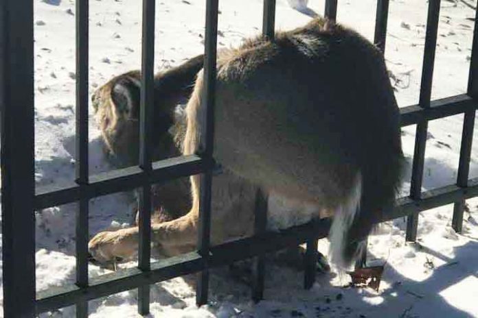 He quickly stopped his patrol vehicle and determined a young deer had become stuck between the fence rails.