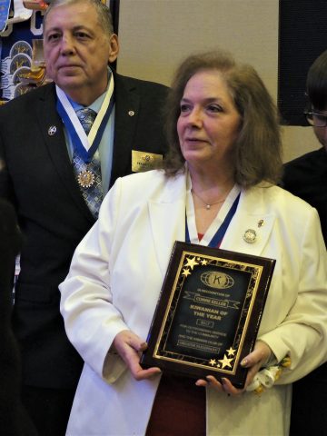 PARSIPPANY — At the annual Awards Dinner of the Kiwanis Club of Greater Parsippany, Past-President and current Treasurer, Connie Keller, was awarded with Kiwanian of the Year. Last year’s honoree, Carol Tiesi, presented the award to Connie.