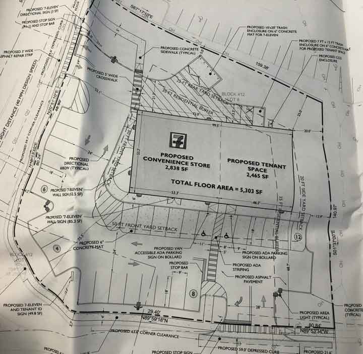 The application will build a building with a total square footage of 5,303. 7-11 will occupy 2,838 square foot and an unnamed tenant will occupy 2,654 square foot. The plans outlines a total of 31 parking spots, and will face Littleton Road.