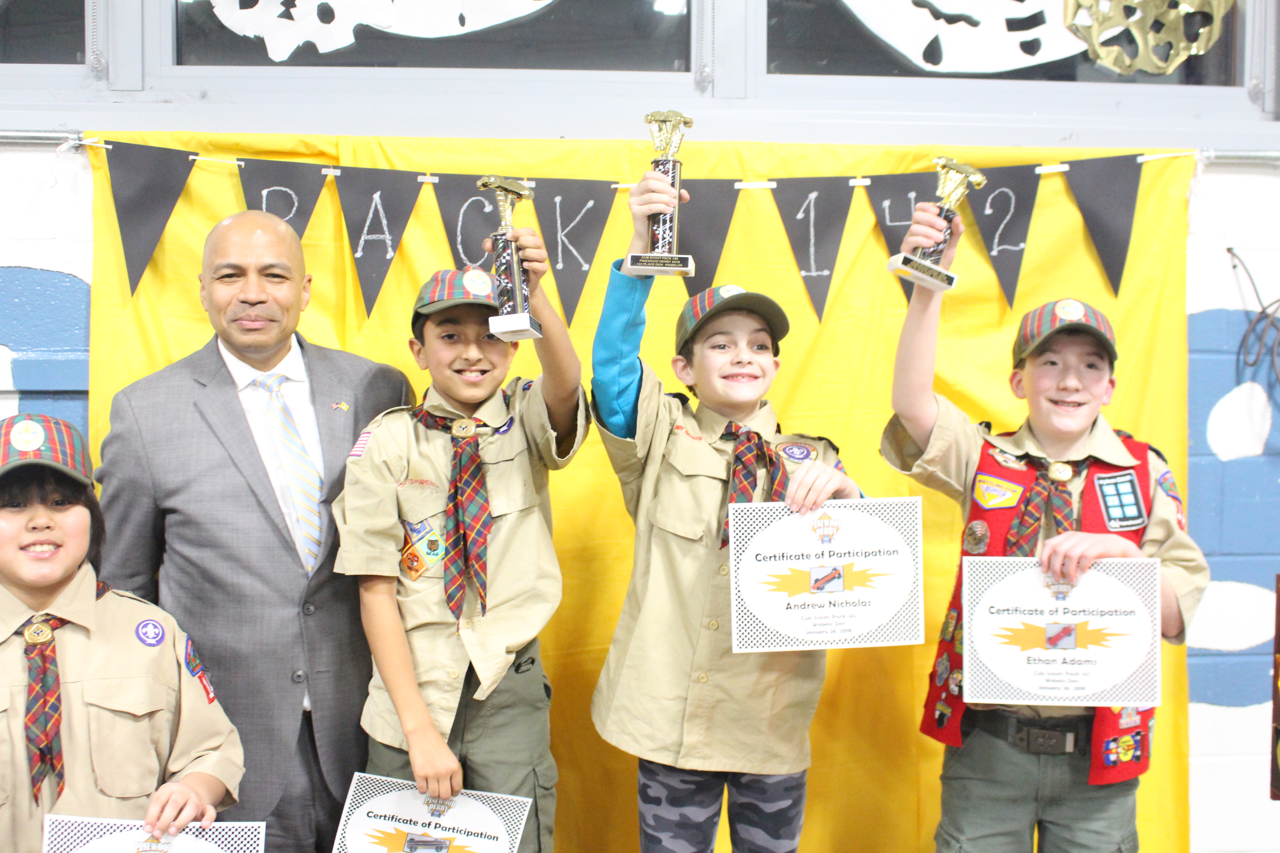 The finalists were, first place, Andrew Nicholas, a member of the Webelos, Den 1; second place was Brendan Frade, a member of the Wolf, Den 4 and third place as Aidan Kane, a member of the Bear, Den 3. These finalists will move on to the finals.