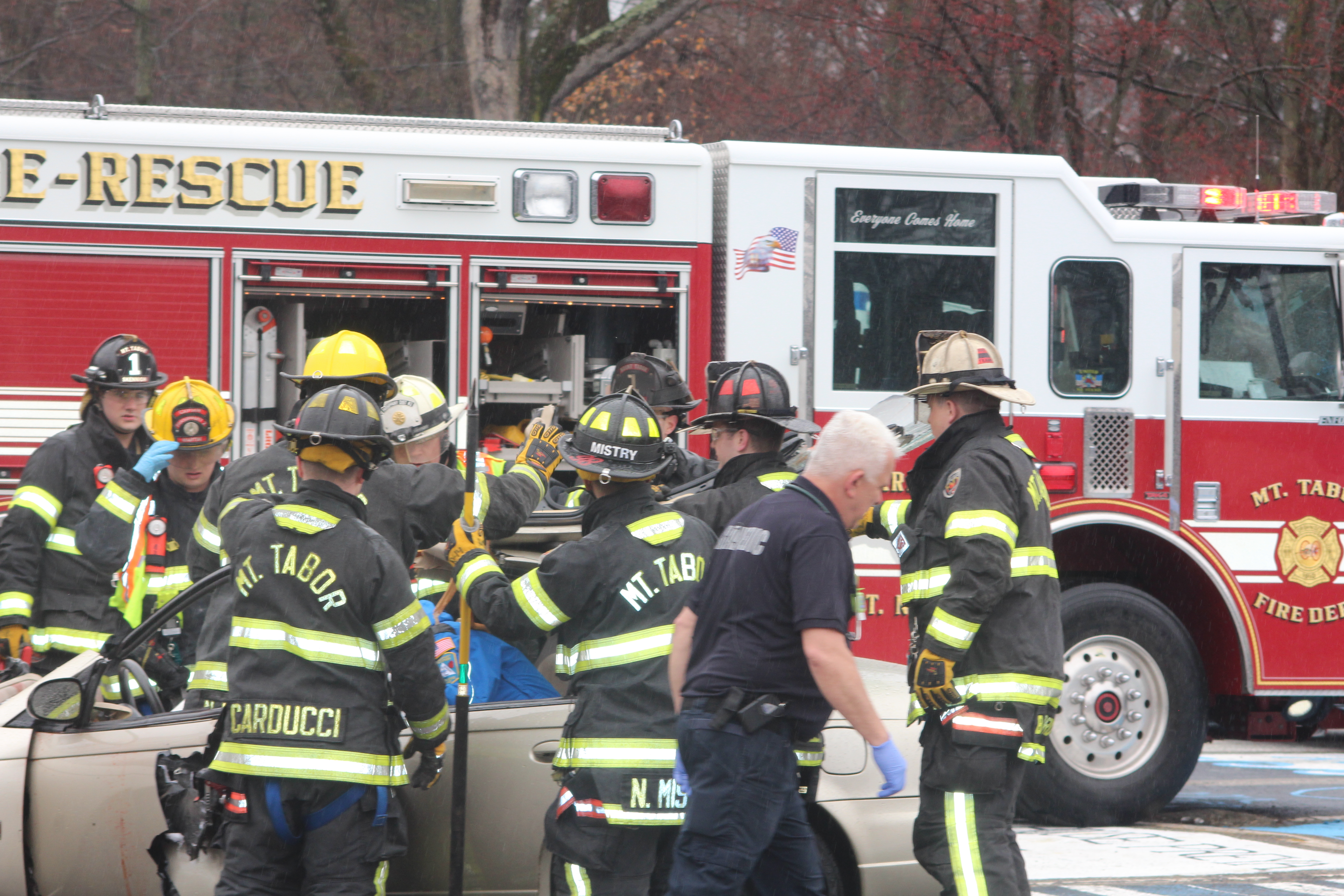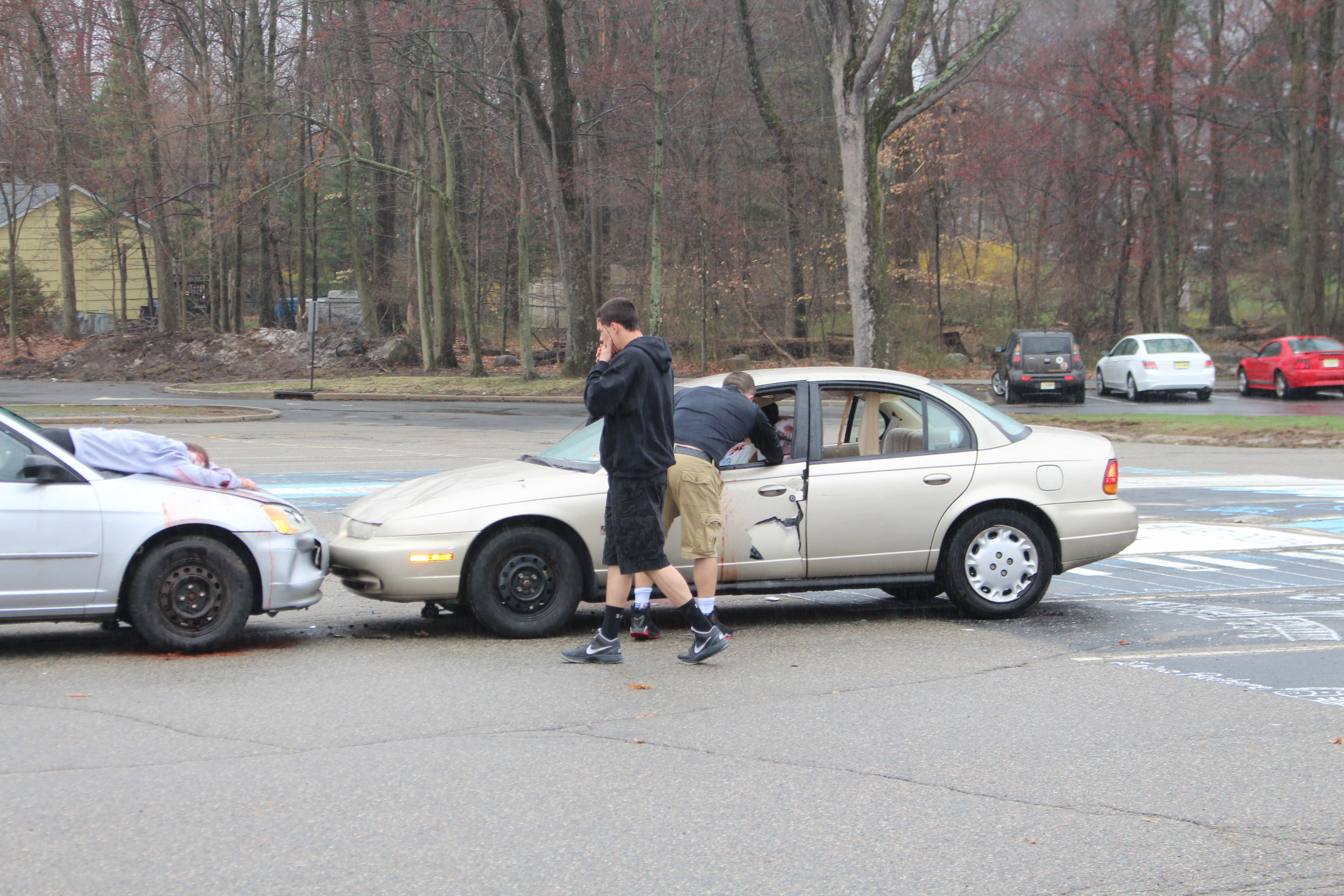 PARSIPPANY — On the morning of Thursday, April 19 students at Parsippany Hills High School took part in an active drunk driving demonstration where police cars, ambulances and fire trucks acted out a drunk driving scene. Students watched in the rain and the weather added to the seriousness of the event.