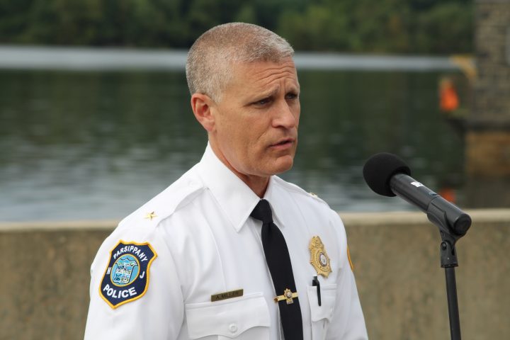 Chief Andrew Miller addresses the audience regarding security at the Boonton Reservoir