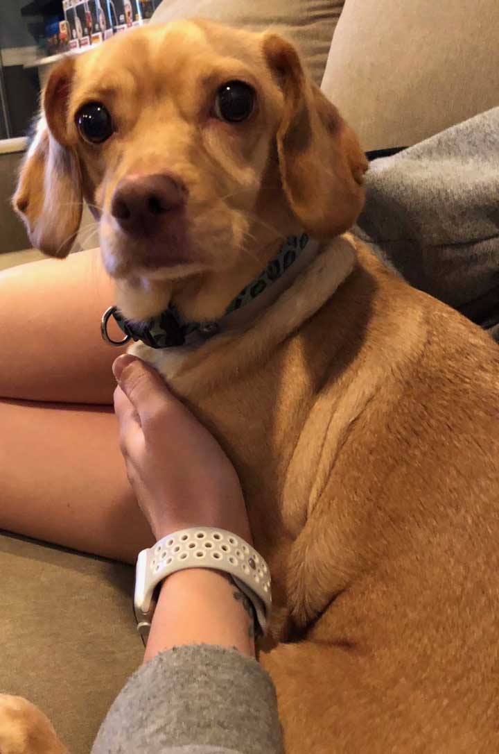 Queenie is potty trained and crate trained–she’s a smart girl! Her favorite activities include snuggling on the couch watching TV, playing with her stuffy toys, and chewing on her nylabone.
