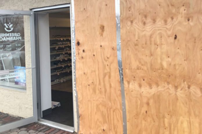 He further stated that he attempted to back up and park in a legal parking space however, his foot slipped off of the brake pedal and accidentally hit the gas pedal which made the vehicle move forward, hit the curb and struck Greenhill Pharmacy which cracked the foundation and shattered the front window. No injuries were reported.