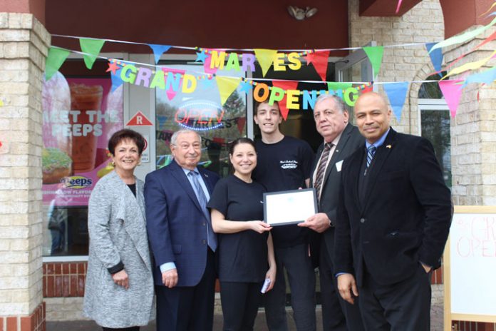 PARSIPPANY — Frank Cahill, Vice Chairman Parsippany-Troy Hills Economic Development Advisory Committee congratulates Marie Riccio and David Rainero from Marie’s Sandwich Shoppe, 450 North Beverwyck Road on the opening of their new business.