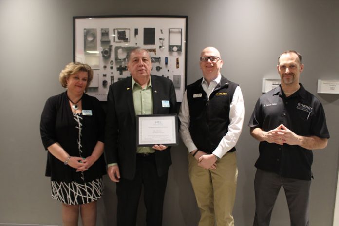 PARSIPPANY โ Parsippany Area Chamber of Commerce Executive Board Member Frank Cahill welcome new member, The UPS Store. Owner PJ Taurkauf, accepts the membership plaque at a recent meeting. Joining in congratulation PJ was Parsippany Area Chamber of Commerce Committee Chair Barbara Freda and Parsippany Area Chamber Board Member Dr. Patrick Selimo.