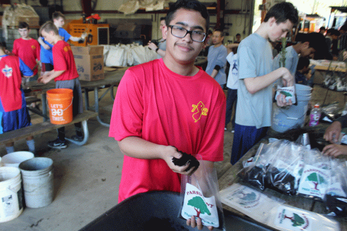 For 2019, the tradition continued as the scouts gatheredย at the Parks and Forestry building on Knoll Road to prepare pine tree seedlings, which wereย distributed to third graders Friday, Arbor Day. The scouts have assisted in this endeavor for several years, and in that time have committed several hundred hours to this project alone.