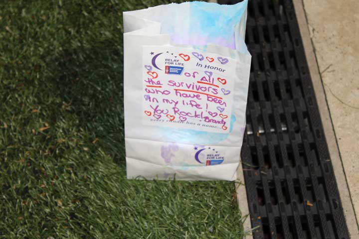 The Luminaria Ceremony occurs at every Relay For Life event. As the sun sets, luminaria lining the track light up the night. A hush falls over the crowd that had been overflowing with celebration. Relay For Life participants, survivors, and caregivers then gather to remember loved ones lost to cancer and to honor those whose fight continues.