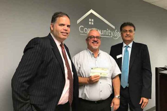PARSIPPANY โ Investors Bank Employees Robert Carrington, Vice President Retail District Manager (left) and Dinesh Jani, Assistant Vice President Branch Manager (right) present Carmine V. Deo, Executive Director of Community Hope, Inc. (center) with a grant award in support of the organizationโs veterans housing programs serving 1,000 homeless veterans annually.