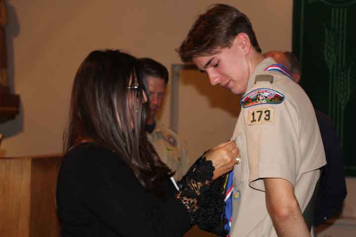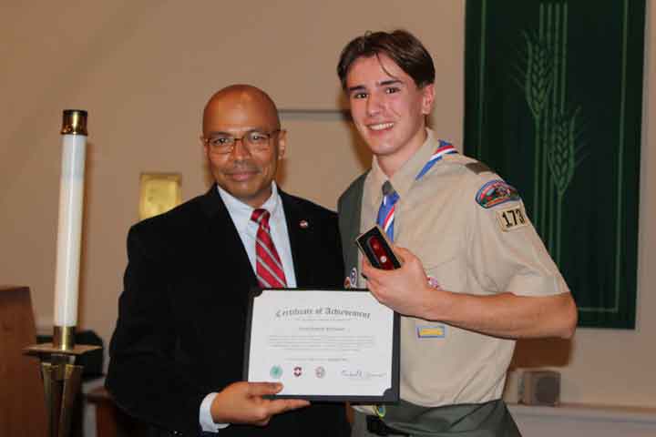 Scoutmaster Michael Catapano was the Master of Ceremonies. Invocation was by Father Joseph G. Buffardi, Saint Christopher R.C. Church. Tyler Catapano, Assistant Senior Patrol Leader performed the Flag Salute and recited the Scout Oath and Law.