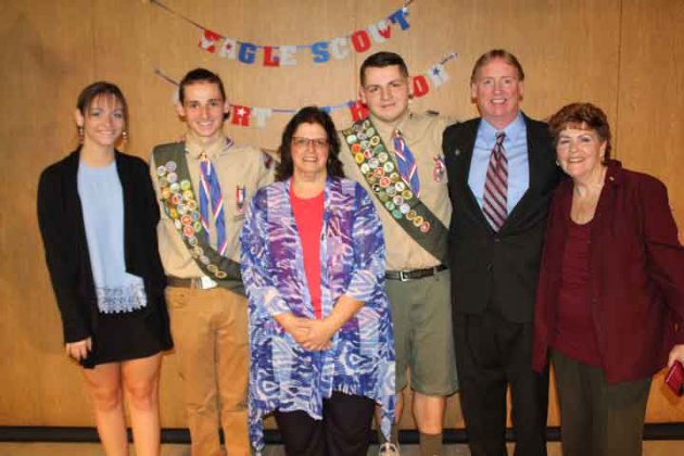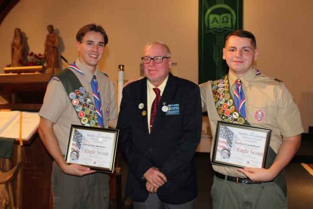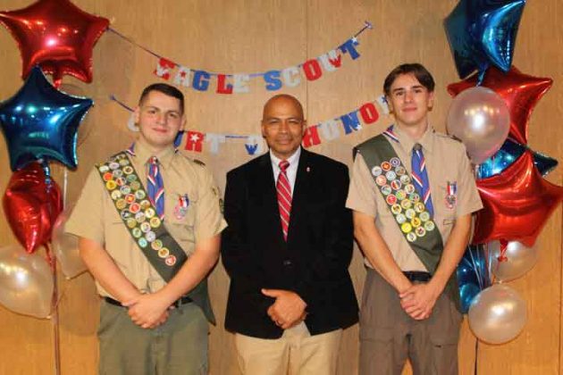 PARSIPPANYย โ€” The final ascent on the Eagle trail is the longest and the hardest.ย  It is not unusual for this rank to take several years, and many Scouts never make it, but for Timothy William Metcalf and Colin Georges Aguesseau that was different. They worked hard and long and achieved the rank of Eagle.ย On Sunday, October 20 Troop 173 B.S.A. held an Eagle Court of Honor in which Timothy William Metcalf and Colin Georges Aguesseau were honored with their Eagle Badge.