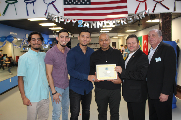 PARSIPPANY โ 1 United MMA House recently celebrated its Second Anniversary. Joining in the celebration with brothers Ibrahim and Yusuf Yoldas was Morris County Sheriff James Gannon, Parsippany-Troy Hills Mayor Michael Soriano, Parsippany Area Chamber of Commerce President Robert Peluso, Executive Board Member Frank Cahill, Board Members Nicolas Limanov, Ildiko Peluso as well as many students, instructors and families.