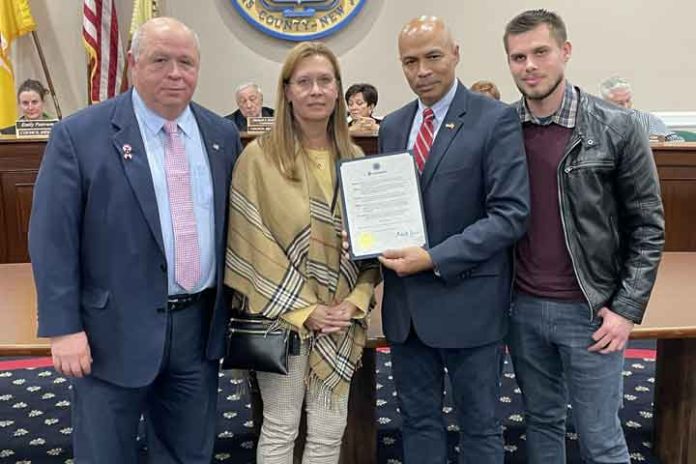 PARSIPPANY โ Mayor Michael Soriano presented AnnMarie Ferrara with a proclamation honoring her husband, the late Vincent Ferrara.ย After reading the proclamation, his son Enzo and Soriano unveiled a plaque in the hallway of Town Hall.