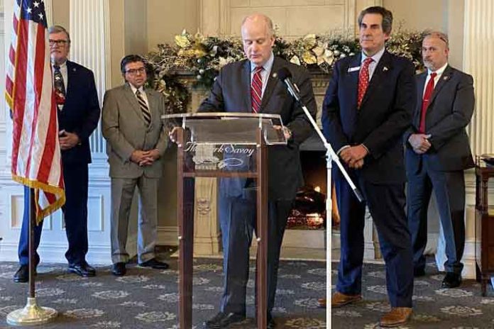 Morris County Sheriff James Gannon, Senator Anthony Bucco, and Morris County Prosecutor Robert J. Carroll