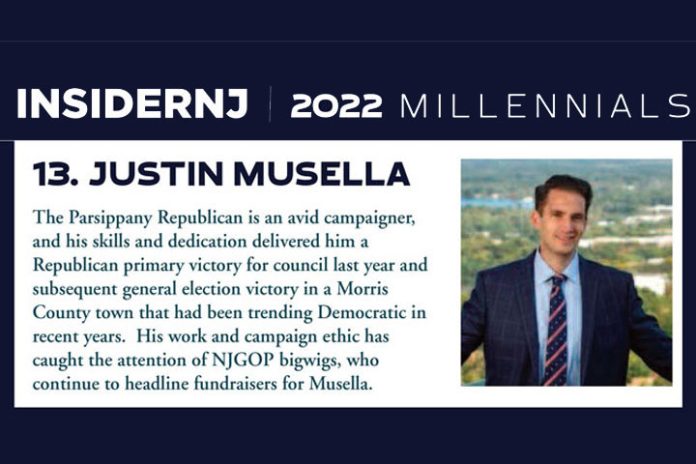 PARSIPPANY โ Parsippany-Troy Hills Councilman Justin Musella was named #13 in โInsider NJโs 2022 Insider 100: Millennials Publication.โ