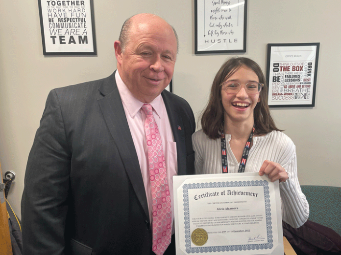 At the ceremony, Mayor James Barberio presented Alicia with a “Certificate of Achievement.”
