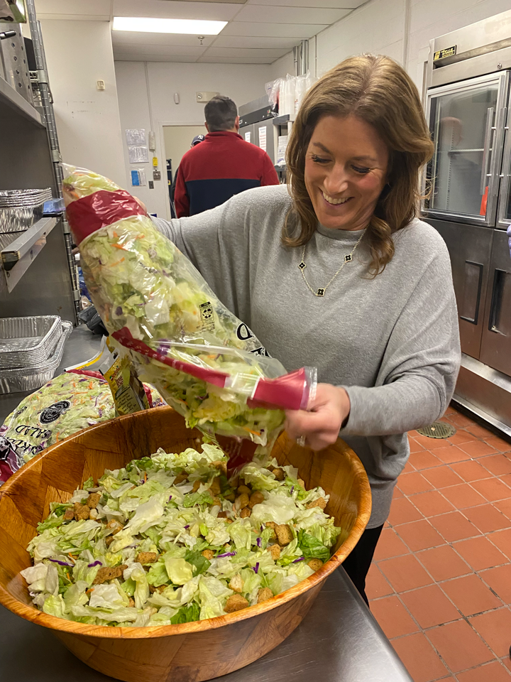 Beth Caponegro., Fundraising Chairwoman for Parsippany Wrestling, mixed the salad.