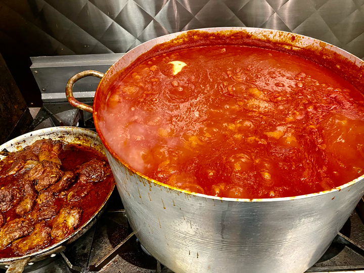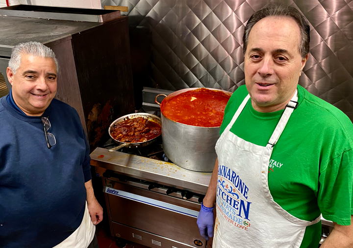 John Gangone and Joe Jannarone Jr. preparing the homemade sauce.