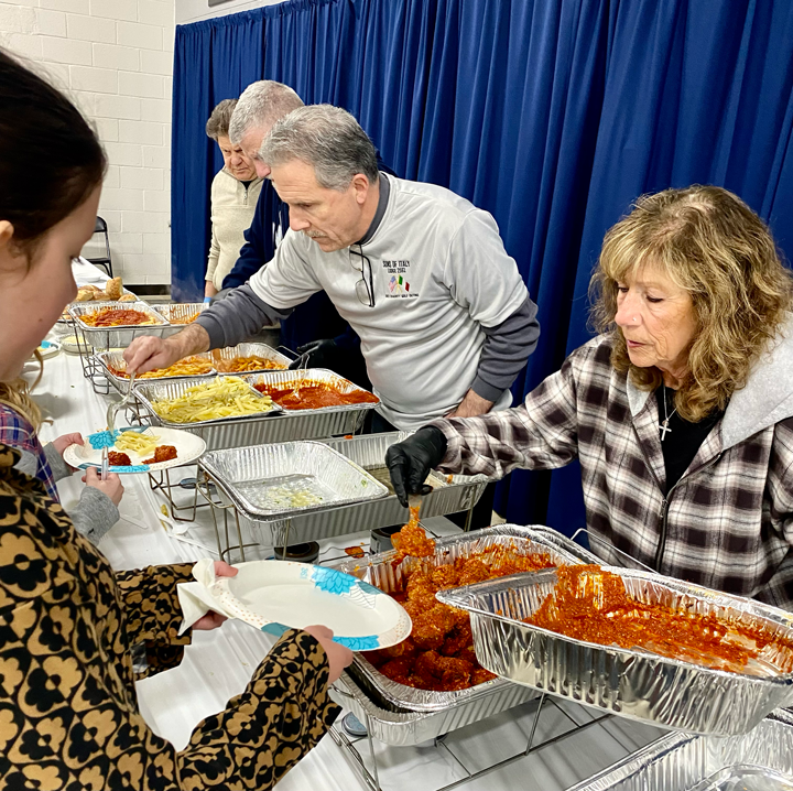 Salad, bread, and various tasty-looking desserts were also being readied by fundraising Chairwoman Beth Caponegro. An anxious, hungry, and happy crowd filled the spacious hall when the doors opened.