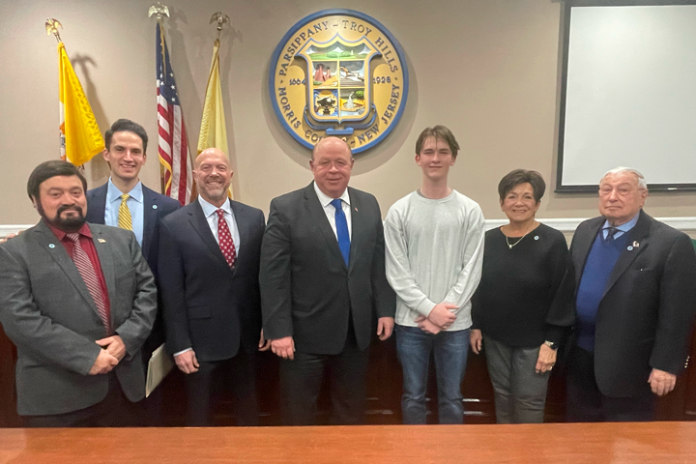Parsippany-Troy Hills Councilman Frank Neglia, Justin Musella, Paul Carifi, Jr., Mayor James Barberio, Mark Schlette, Council President Loretta Gragnani and Vice President Michael dePierro