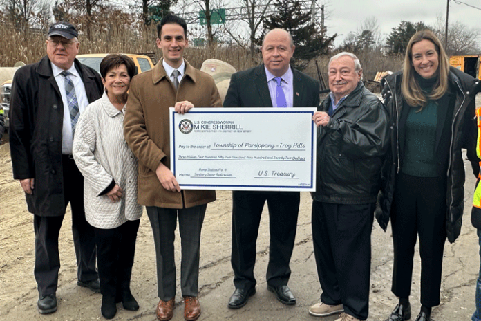 PARSIPPANY — On Tuesday, February 21, Mayor Barberio, along with Council President Loretta Gragnani, Council Vice-President Michael dePierro, Council member Justin Musella and Parsippany Sewer Superintendent Joe Beckmeyer, received federal grant monies presented by Congresswoman Mikie Sherrill for Pump Station 4, an integral part of Parsippany-Troy Hills’ wastewater treatment system. Pump Station 4 is the largest wastewater pumping station in the Township’s Sewer Service Area and, at almost 60 years old, is at the end of its useful life. “The work being done to decommission this pump and replace it with a gravity sewer connection will provide considerable energy, operational and repair savings, and the reliability of providing wastewater conveyance will be greatly enhanced,” said Mayor Barberio.