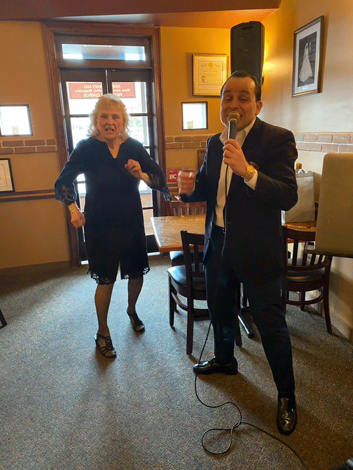 The event certainly did not disappoint, as the room was filled with fun conversations, laughter, outstanding food, and live music. Gourmet Cafรฉ Chef Matt created a top-notch menu for the event, consisting of a mouth-watering selection of Meatballs and Caesar Salad for the first course, followed by Penne Vodka topped with Ricotta, then a selection of entrees, including Lobster Ravioli, Linguine White Clams, Eggplant Parmigiana, and Chicken Marsala.ย Followed by Tartufo and Coffee.