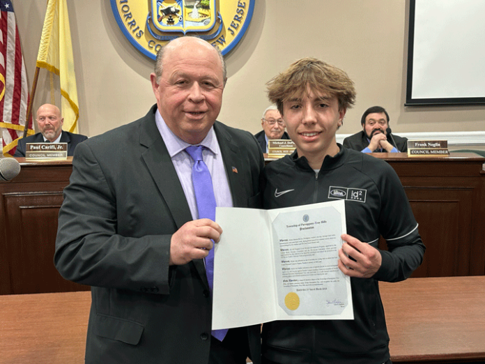 PARSIPPANY — At the Parsippany-Troy Hills Council meeting on Tuesday, March 21, Parsippany resident Dylan Mazzarella was recognized by Mayor James Barberio and presented with a Proclamation proclaiming March 21 as “Dylan Mazzarella Day.”