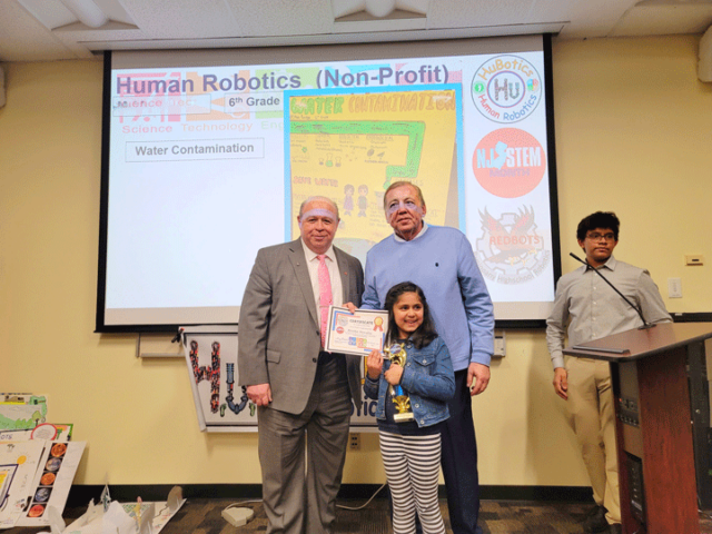 PARSIPPANY — The Human Robotics non-profit organization, in partnership with STEM NJ Pathways, recently hosted a STEAM poster competition in Parsippany on March 25. The event featured 38 elementary and middle school students displaying their posters on various topics ranging from green energy, how technology works, save the earth to nuclear fission.