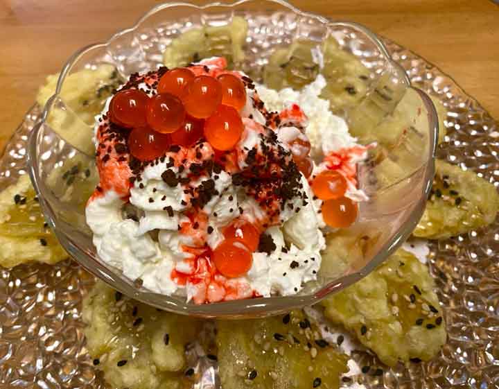Others in the group chose either the Tuna Sushi or the Bento Box (Teriyaki, Nigimaki, Tempura, or Sushi), along with side orders of Spicy Mayonnaise and Fried Rice. Everyone agreed their choices were delicious and satisfying.ย The Banana Tempura Special for dessert was a perfect closing statement for this meal. WOW! Decadently delicious is an understatement.