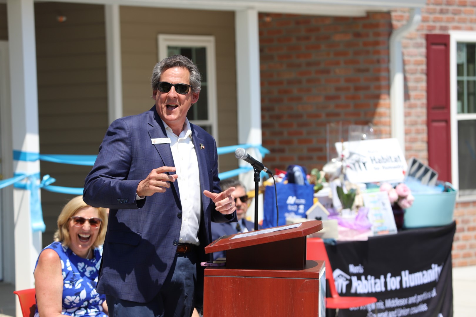 He continued, โSo here we are, 4,000 volunteers and 18,000 hours later, a huge achievement for (Morris) Habitat and the families moving into these affordable, energy-efficient homes. I want to thank all the volunteers, donors, sponsors, and staff. You are all the heart and soul of this organization, and you have shown what can be done when we all work together towards a common goal.โ