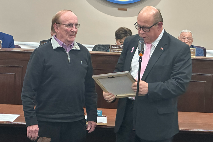 PARSIPPANY — Mayor James Barberio of Parsippany-Troy Hills honored Ed Hansberry with a “Certificate of Achievement” in recognition of his remarkable 55 years in business.