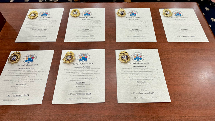 PARSIPPANY — Mayor James R. Barberio and Chief of Police Richard Pantina presided over a Promotional Ceremony on February 7, 2024, promoting seven Parsippany Police Officers for their advancements.