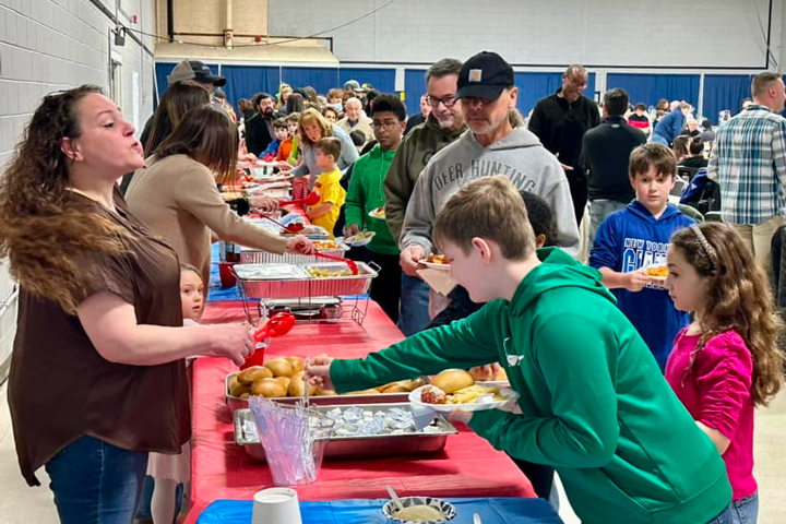 The turnout exceeded expectations, with the large crowd enjoying an all-you-can-eat meal and participating in a tricky tray that encircled the room. In total, the kitchen crew prepared approximately 80 lbs. of penne pasta, 40 pounds of meatballs (equivalent to 640 meatballs), a variety of gluten-free pasta, 14 gallons of tomato sauce, and butter sauce. Donuts and cookies provided the perfect finishing touch to the feast.