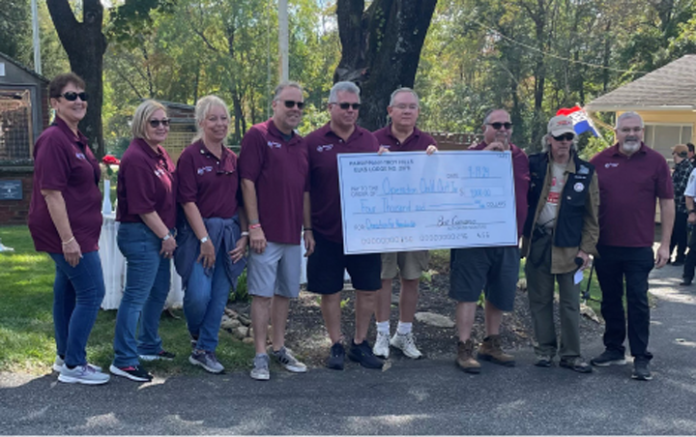 PARSIPPANY — On September 22, 2024, members of the Parsippany-Troy Hills Elks volunteered at the annual Vet Fest, assisting with setup and presenting a donation of $4,000 to Operation Chill Out, a nonprofit organization dedicated to helping homeless veterans with housing and providing winter clothing.