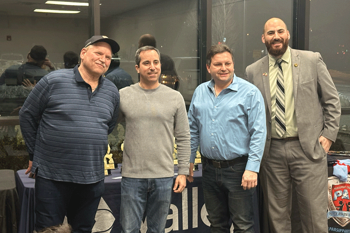 Steve Elias, Coach Chris Gonnella, Robert Peluso, and PAL Executive Director Nicholas Bronzino