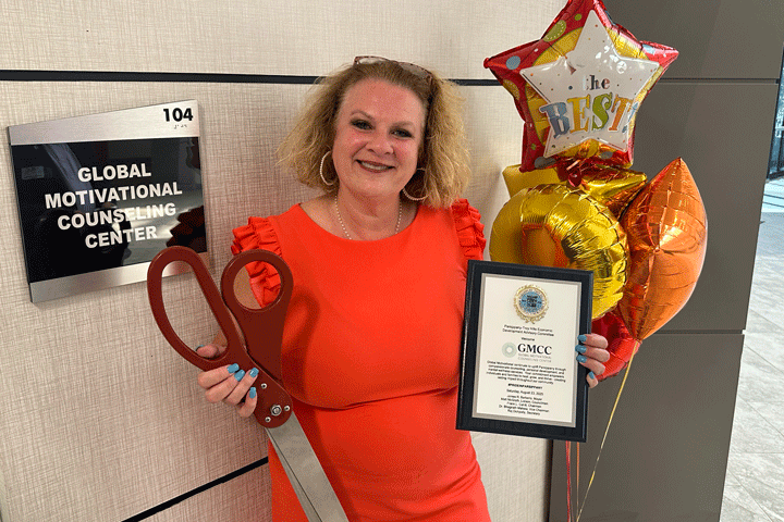 The ribbon cutting was attended by Lori LoManto and employees of Global Motivational Counseling Center, Mayor James Barberio, Council Vice President Frank Neglia, Councilman Justin Musella, Parsippany-Troy Hills Economic Development Chairman Frank Cahill and Raviram Medapati, Parsippany Area Chamber of Commerce President Robert Peluso, and Board Member Nicolas Limanov.