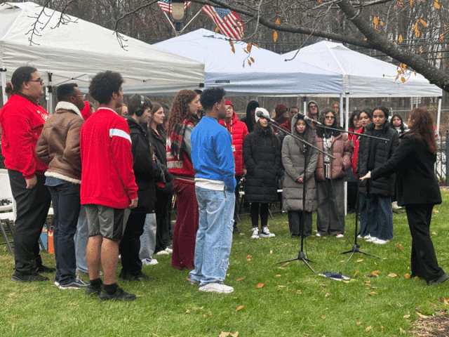 Students from Parsippany High School perform the national anthem, showcasing local talent and patriotic spirit during the ceremony.