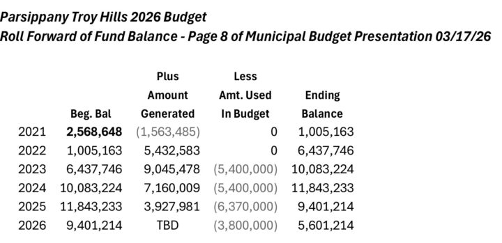 The CFO said that taxes not included in 2025 are excluded from revenue as part of the 2026 budget. However, in 2026 Parsippany will receive revenue from PILOT projects. That means taxes will increase more than is necessary given unbudgeted funds received from PILOT projects.