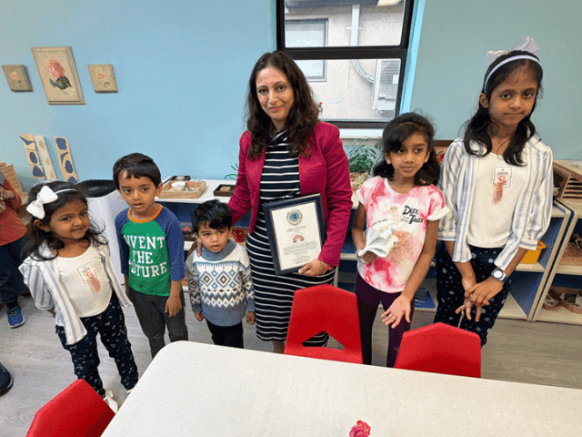 Parsippany-Troy Hills Economic Development Chairman Frank Cahill presented owner Saloni Mathur with a plaque on behalf of the township and said “Vistaar Montessori School continues to make a meaningful impact in theParsippany community by providing a thoughtful, child-centered approachto early education rooted in the globally respected Montessori philosophy. Located in the heart of the Parsippany area, the school has become a valued resource for families seeking an educational environment that fosters independence, curiosity, and a lifelong love of learning in young children.”