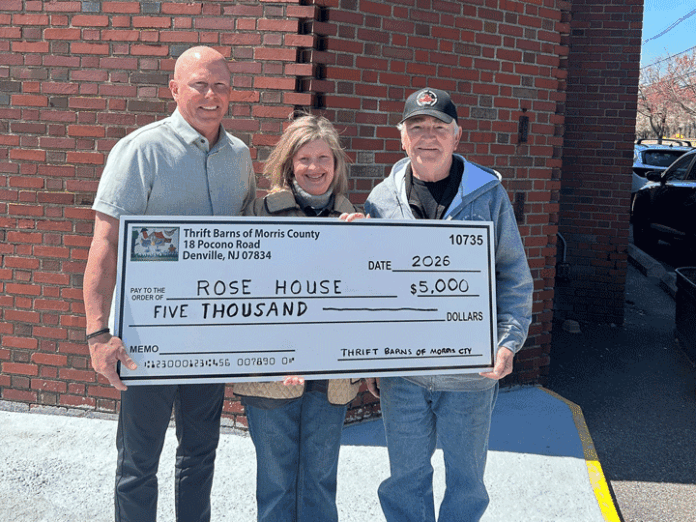 MORRIS COUNTY — Rose House, a nonprofit organization that creates affordable, permanent housing for adults with developmental disabilities throughout Morris County, recently received a generous gift from Thrift Barns of Morris County, Denville. For the second consecutive year, the organization donated $5,000 to support Rose House residents with special needs.