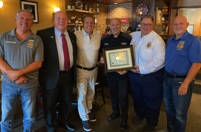 PARSIPPANY โ On Thursday, July 21 Chef Matthew Pierone, Head Chef and Proprietor, of Parsippanyโs Gourmet Cafรฉ received a Recognition Award from the Italian American Police Society of New Jersey (IAPSNJ) in recognition of his generosity, dedication, and support to the organizations Healthcare Heroes & 1st Responders COVID support campaign.