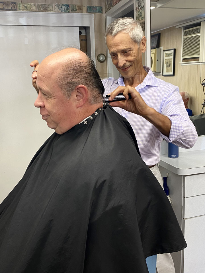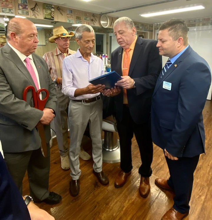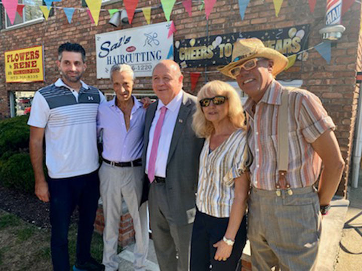 Lou Leone, Sal Leone, Parsippany-Troy Hills Mayor James Barberio, Vincenza Leone and Robert SmithMayor James Barberio gets a haircut by Sal Leone
