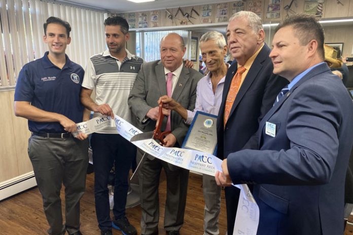 Cutting the celebration ribbon was Parsippany-Troy Hills Councilman Justin Musella, Lou Leone, Parsippany-Troy Hills Mayor James Barberio, Sal Leone, Parsippany-Troy Hills Economic Development Committee Chairman Frank Cahill and Parsippany Area Chamber of Commerce President Robert Peluso