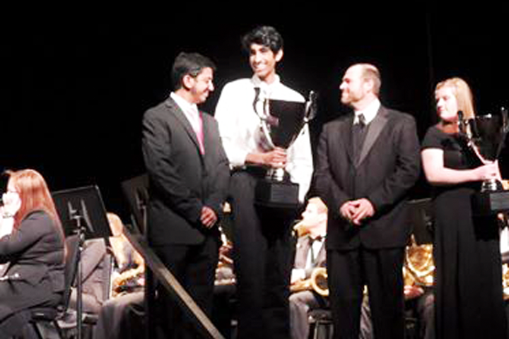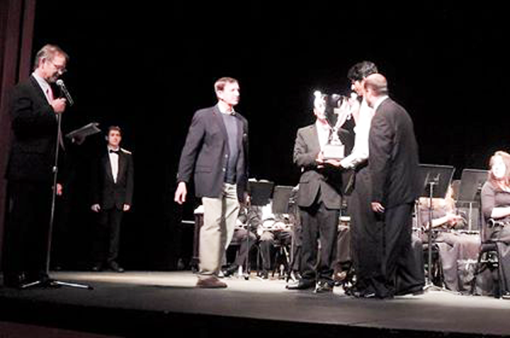 Group picture of the Wind Ensemble with their award
