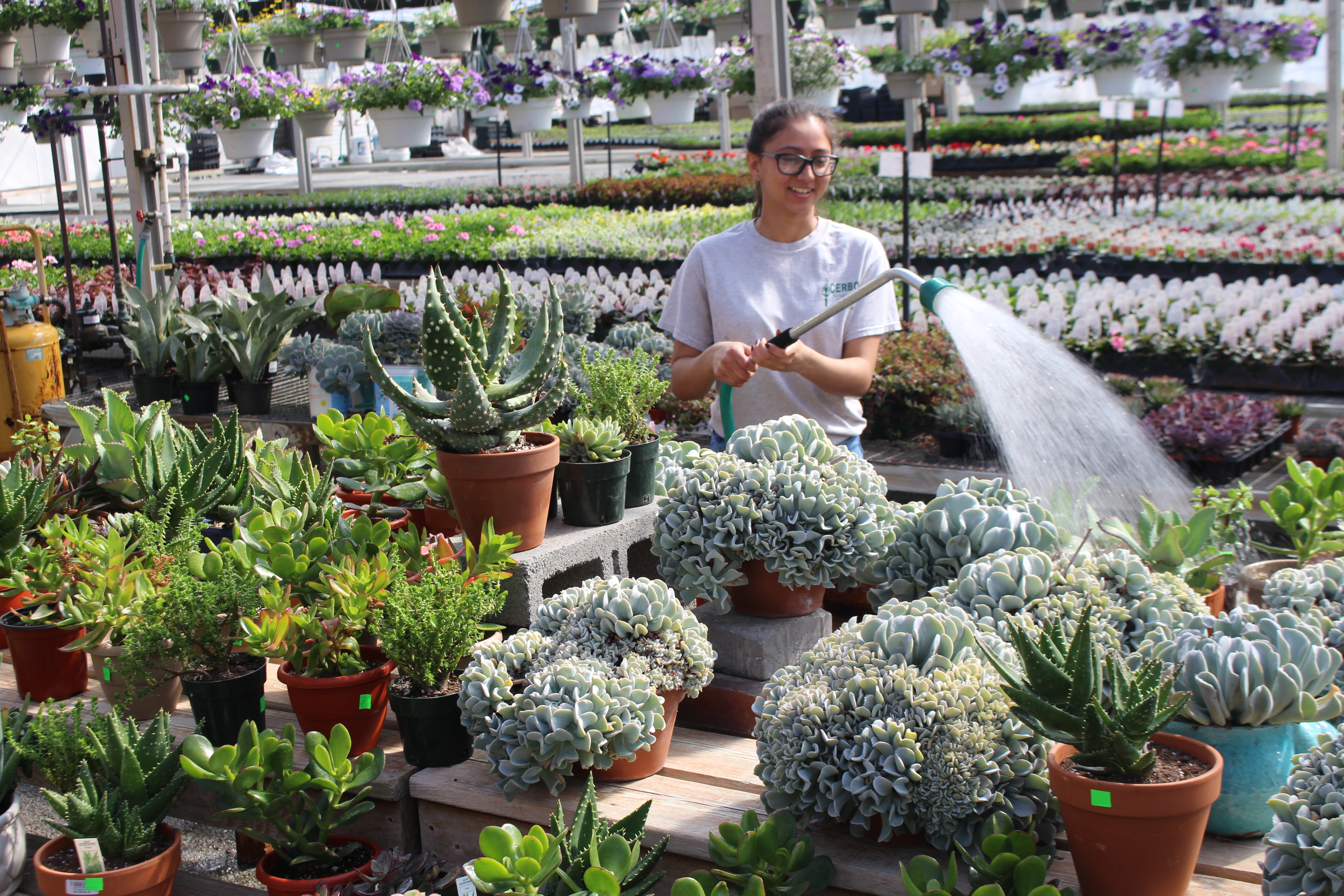 Long-running nursery carrying seasonal flowers, trees & shrubs, plus soil & landscaping products.Long-running nursery carrying seasonal flowers, trees & shrubs, plus soil & landscaping products.Employee watering the plants in the greenhouseTony Cerbo