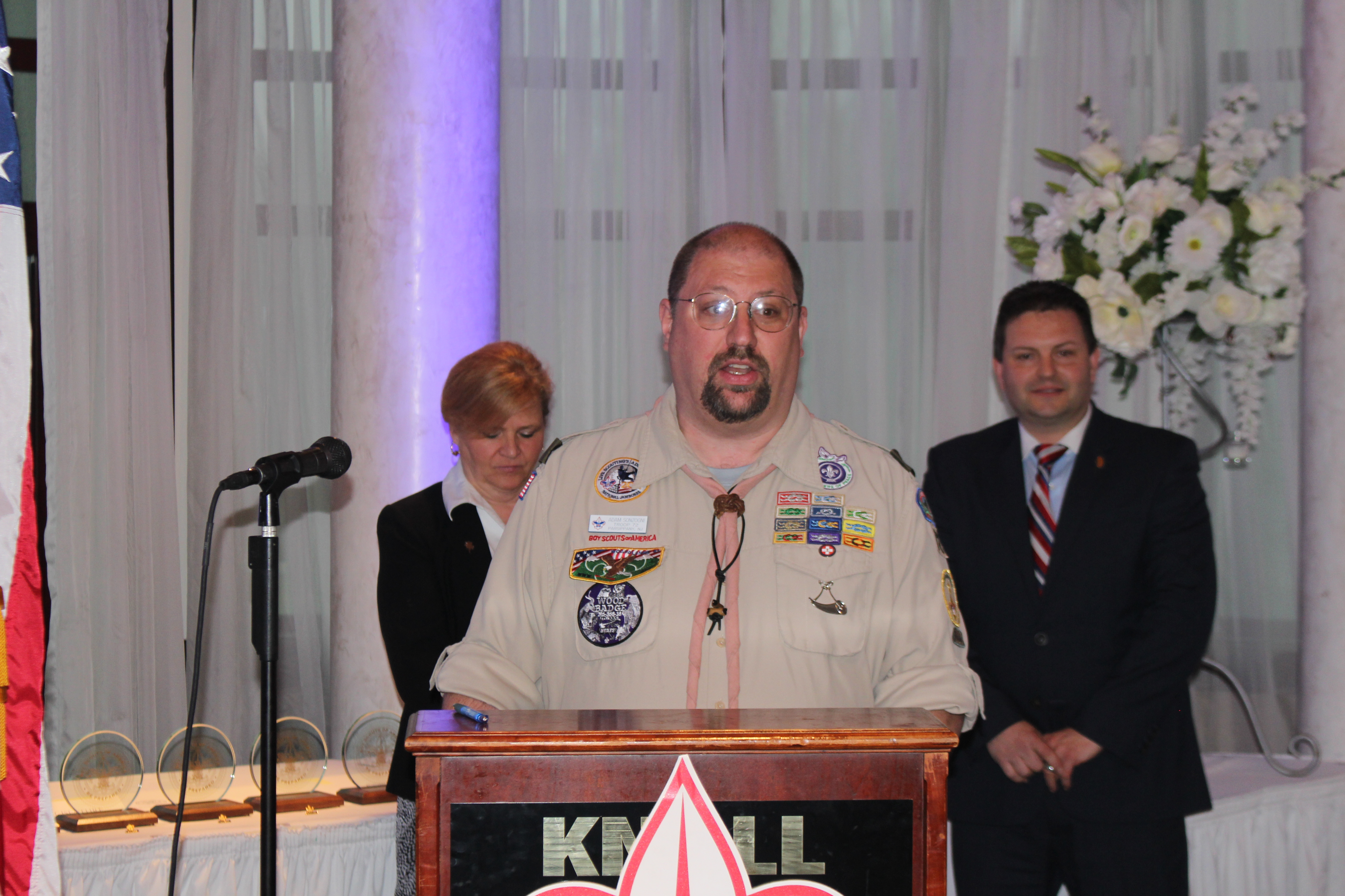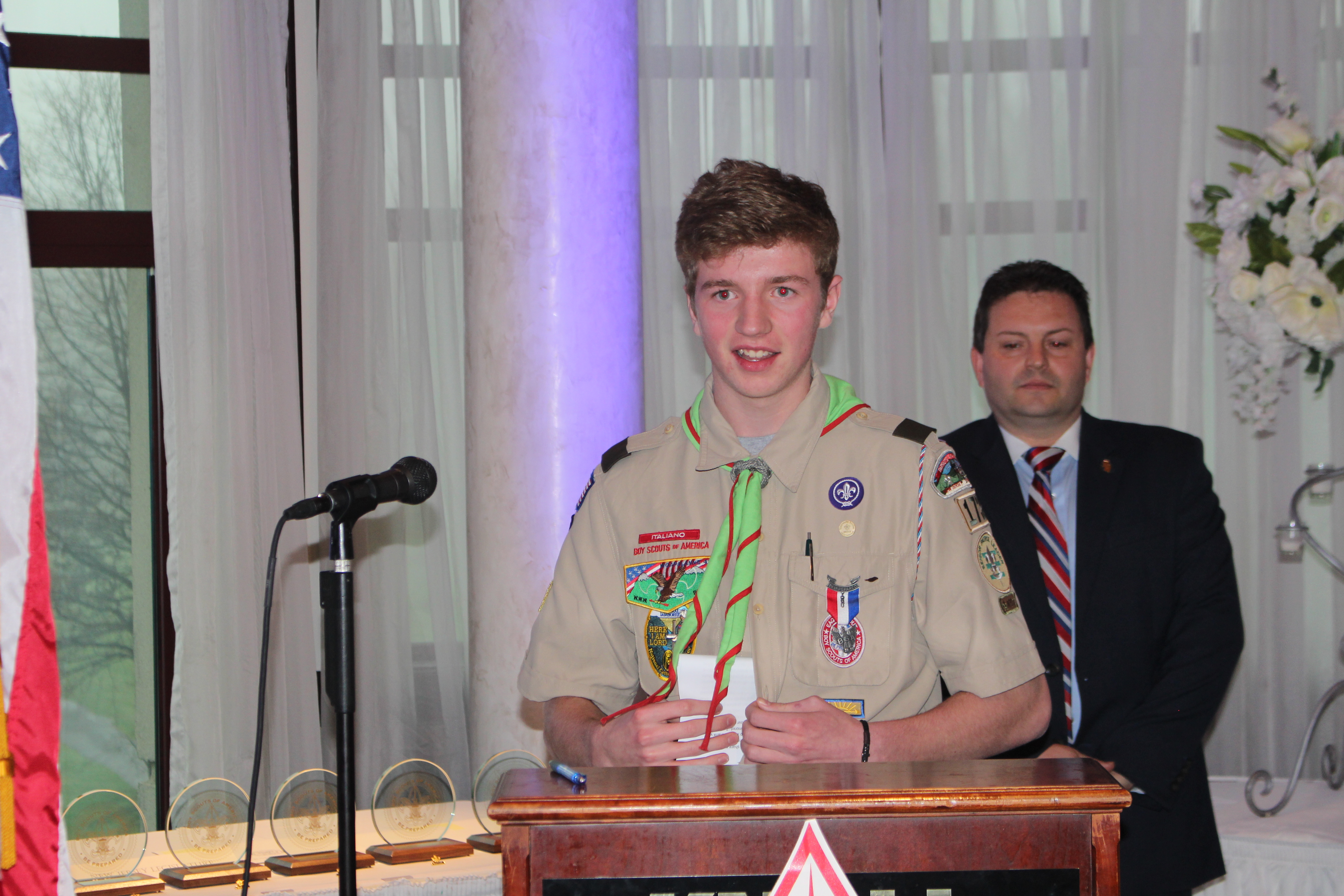 Eagle Scout Thomas Capatano, Troop 173, telling the audience "What Scouting Means to Me"