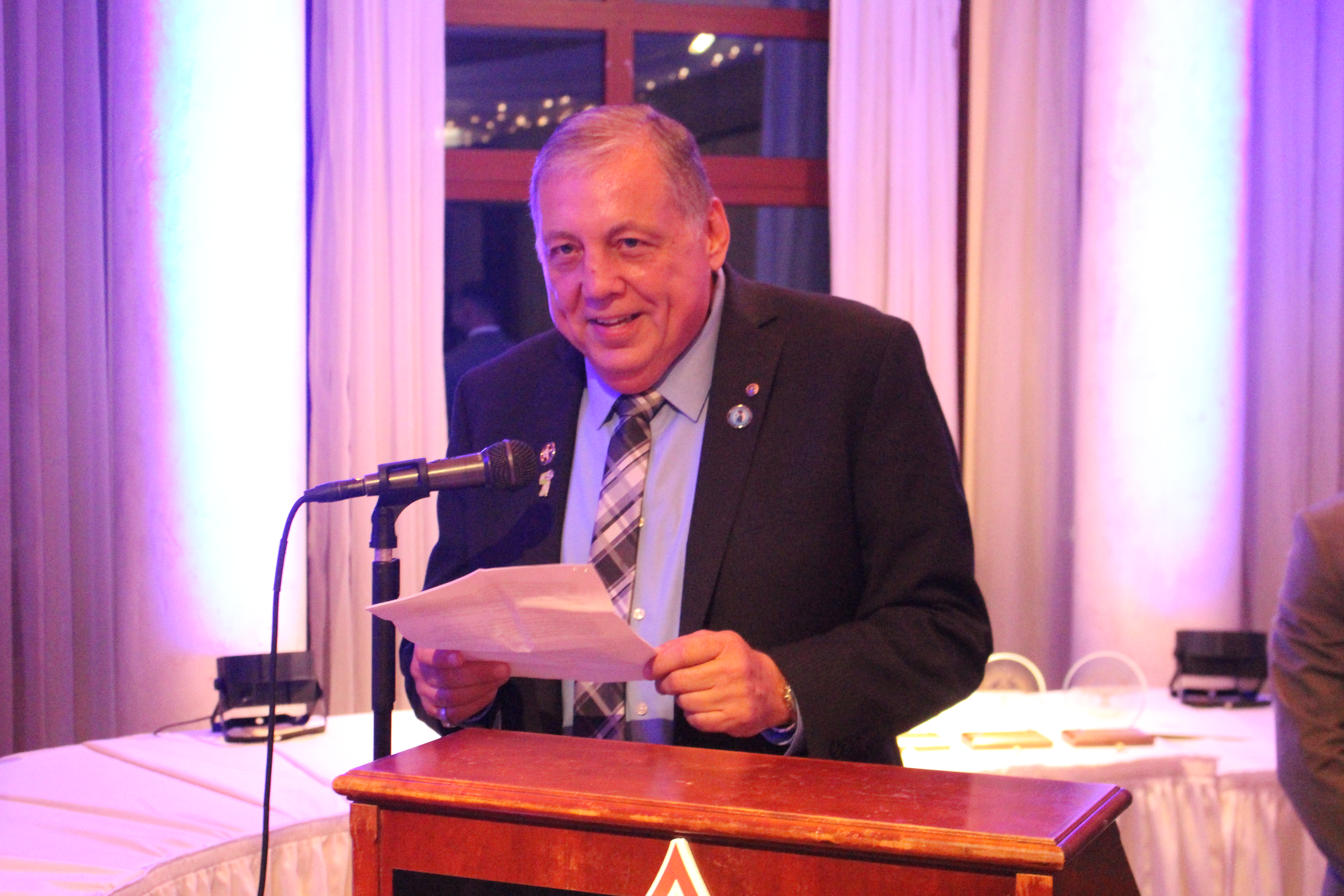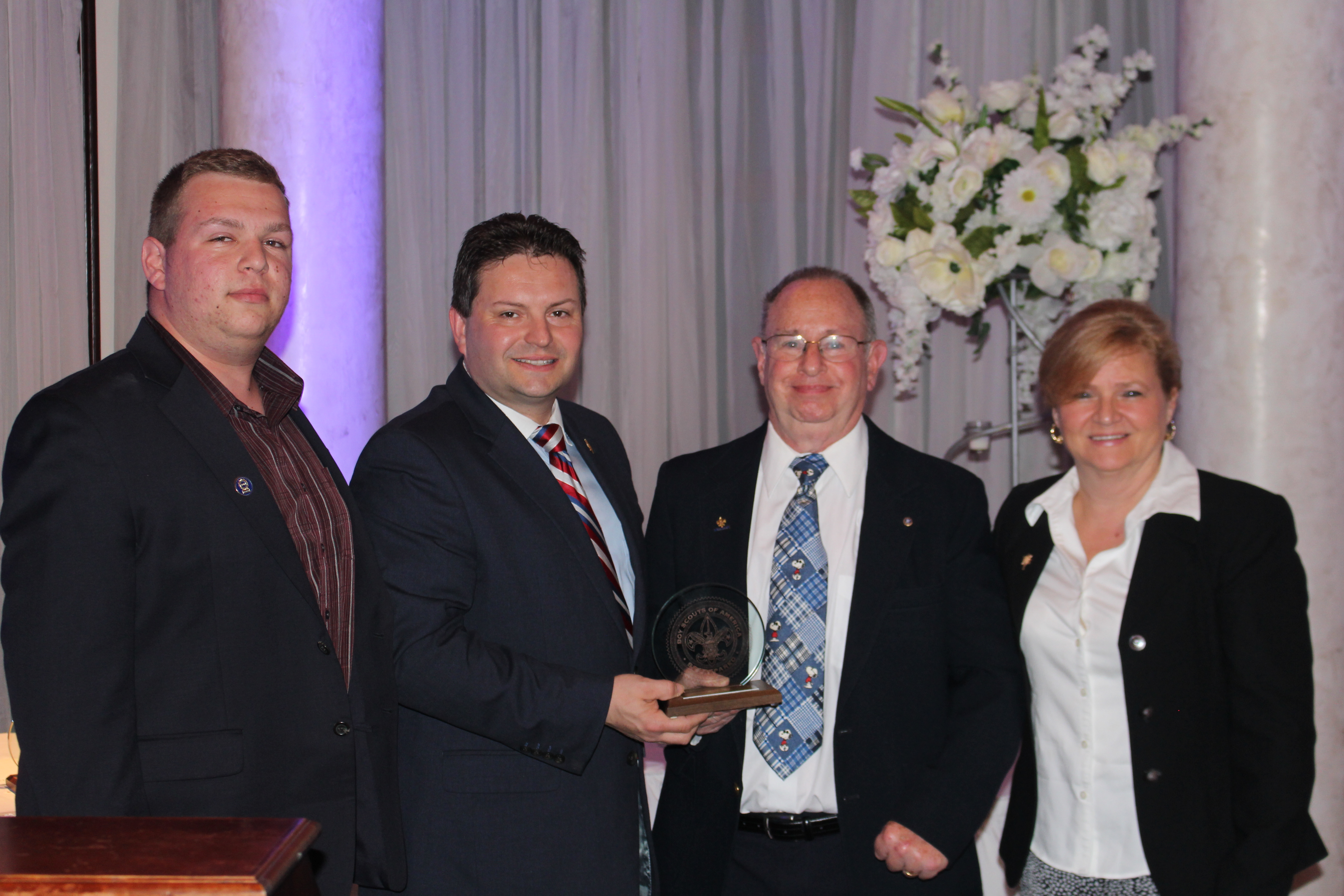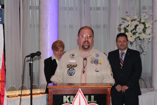 Welcoming and opening remarks were presented by dinner Co-Chairs Robert Peluso and Karen DeChristopher. The Opening Ceremony Flag Detail was performed by Boy Scout Troops 72 & 173. Eagle Scout Thomas Capatano received a standing ovation from the crowd when he talked about “What Scouting Means to Me.”