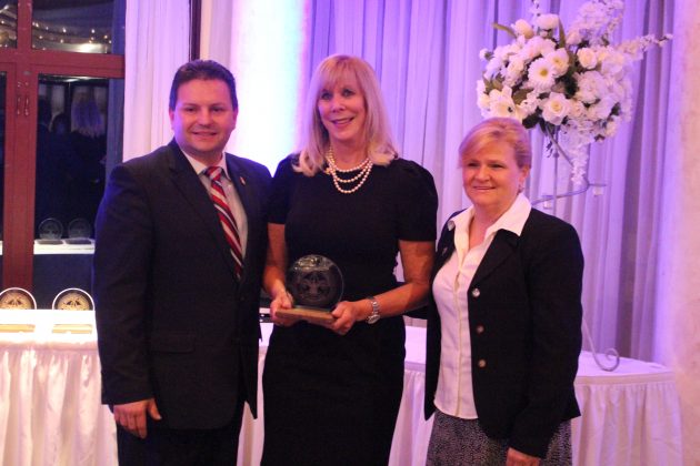 Superintendent of Schools Dr. Barbara Sargent congratulating 2018 Parsippany Good Scout Award Honoree Carol Tiesi