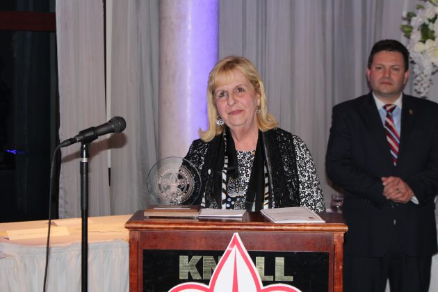 Carol Tiesi accepting the 2018 Parsippany Good Scout Award